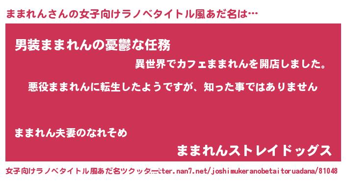 | 意味不明あだ名 | 『住所不定無職ままれん(43歳)』 |