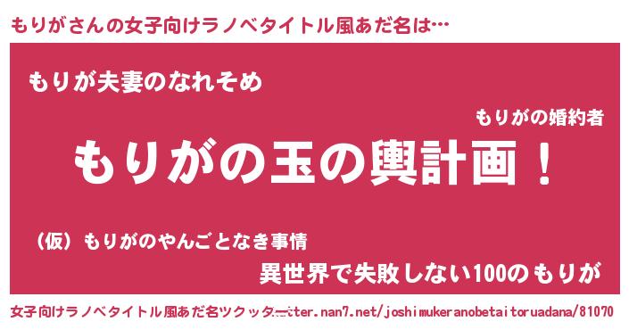| ヘコむあだ名 | 『もりが(爆)』『牛乳』『もりにゅー』 |
