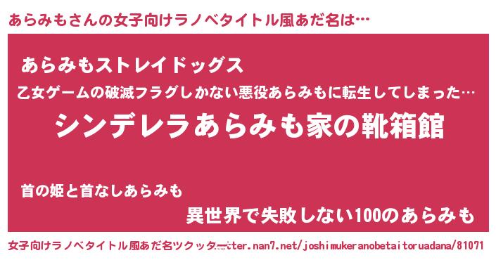 | 意味不明あだ名 | 『自称あらみも』『永久保存あらみも』 |