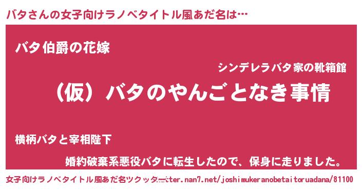 | 男性向けラノベタイトル風あだ名 | 『バタの憂鬱』『転生したらバタだった件』 |