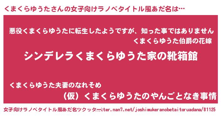 | 男性向けラノベタイトル風あだ名 | 『緋弾のクマクラユウタ』 |