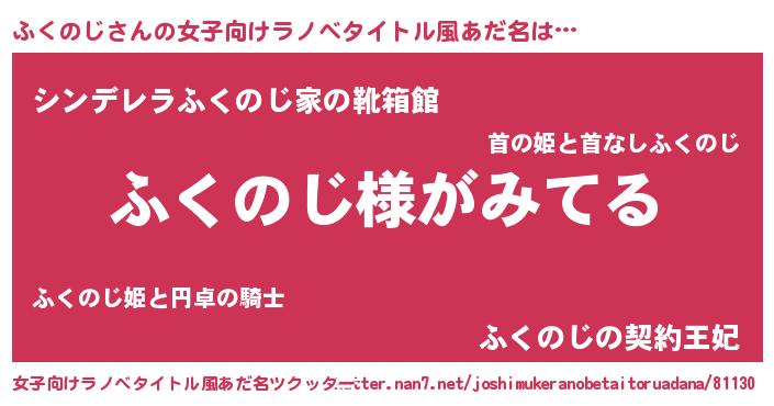 | 男性向けラノベタイトル風あだ名 | 『ふくのじの嫁は女の子じゃないと思った?』 |