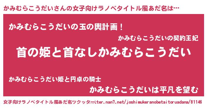 | ヘコむあだ名 | 『かみ太郎』『かみむらこうだい(笑)』 |