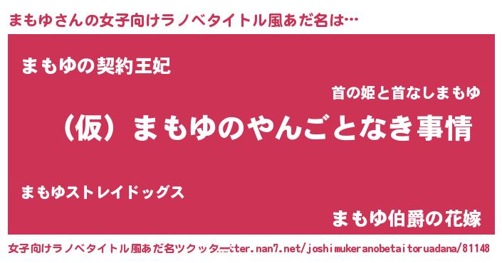| 男性向けラノベタイトル風あだ名 | 『まもゆの憂鬱』『はたらくまもゆさま!』 |