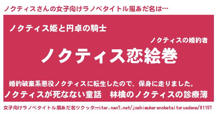 | ヒーロー風カッコイイあだ名 | 『愛の使者ノクティス』『仮面ノクダー』 |