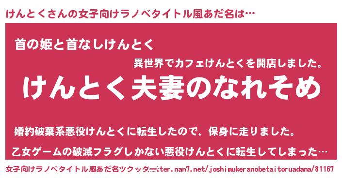 | ヒーロー風カッコイイあだ名 | 『正義の使者けんとく』『仮面ケンダー』 |