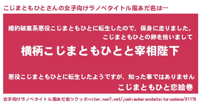 | 男性向けラノベタイトル風あだ名 | 『こじまともひとに滅ぼされるだけの簡単なお仕事です』 |