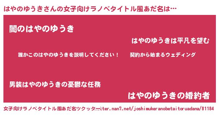 | 男性向けラノベタイトル風あだ名 | 『ハヤノユウキアートオンライン』 |