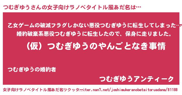 | 胡散臭い通販商品みたいなあだ名 | 『必ず成功するブレスレット…その名も「つむぎゆう」』 |