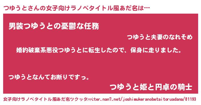| 男性向けラノベタイトル風あだ名 | 『転生したらつゆうとだった件』 |
