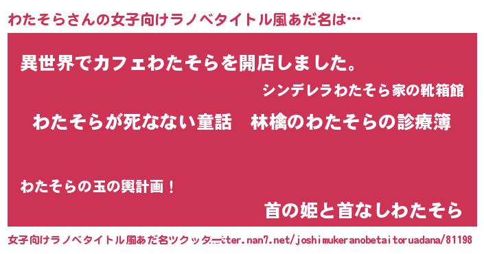 | 意味不明あだ名 | 『住所不定無職わたそら(91歳)』 |