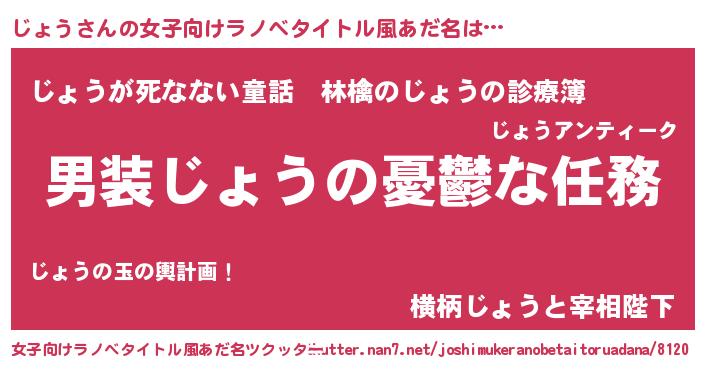 | ヒーロー風カッコイイあだ名 | 『仮面ジョダー』『超時空戦士ジョウ』 |