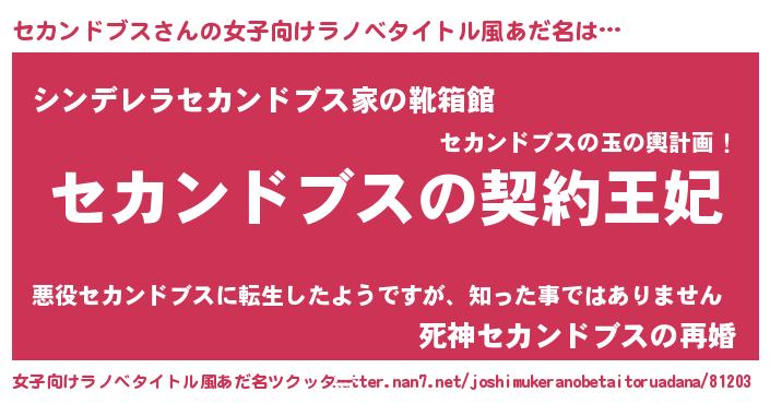 | 男性向けラノベタイトル風あだ名 | 『セカンドブスという概念が存在しない退屈な世界 』 |