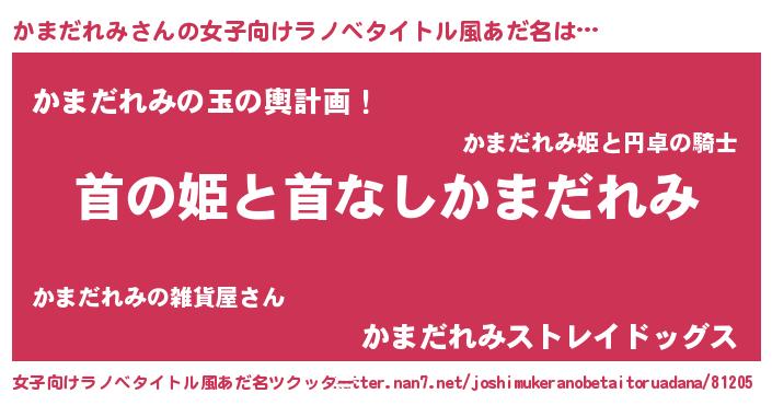 | 男性向けラノベタイトル風あだ名 | 『はたらくかまだれみさま!』 |