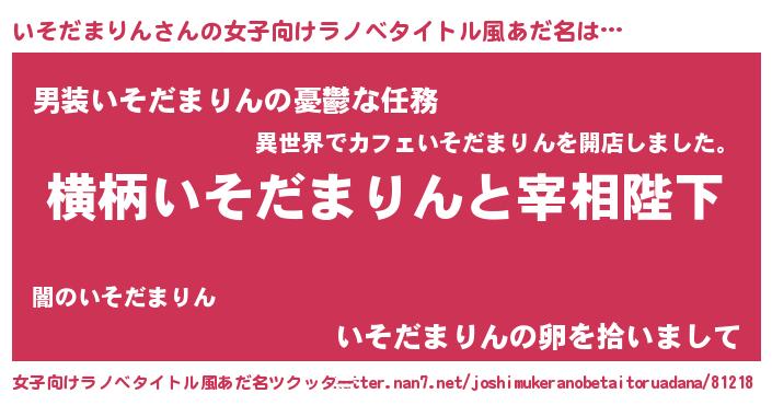 | 男性向けラノベタイトル風あだ名 | 『いそだまりんに滅ぼされるだけの簡単なお仕事です』 |