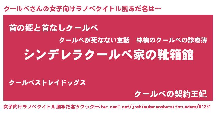 | 男性向けラノベタイトル風あだ名 | 『緋弾のクールベ』『魔弾の王とクールべ』 |