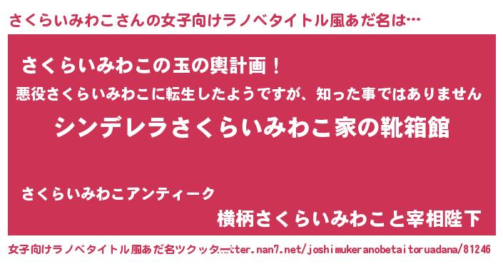 | 男性向けラノベタイトル風あだ名 | 『冴えないさくらいみわこの育てかた』 |