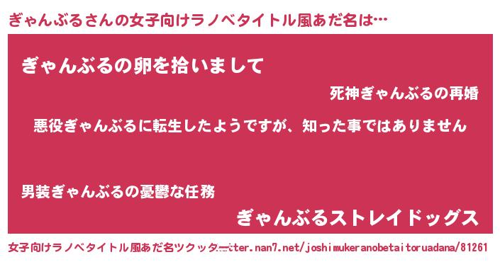 | 意味不明あだ名 | 『住所不定無職ぎゃんぶる(41歳)』 |