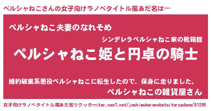 | 男性向けラノベタイトル風あだ名 | 『ペルシャネコアートオンライン』 |