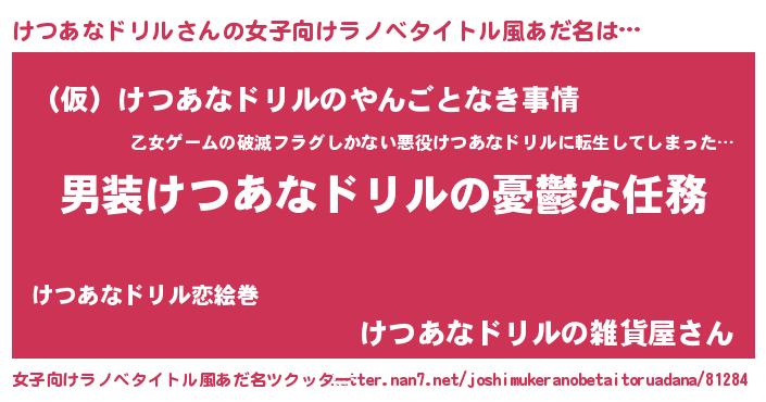 | 男性向けラノベタイトル風あだ名 | 『冴えないけつあなドリルの育てかた』 |