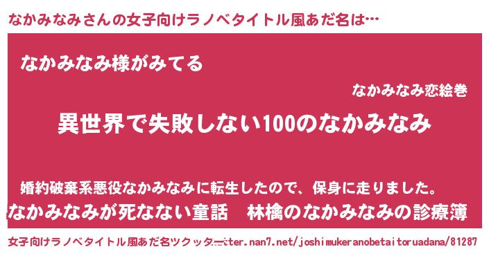 | 男性向けラノベタイトル風あだ名 | 『なかみなみという概念が存在しない退屈な世界 』 |