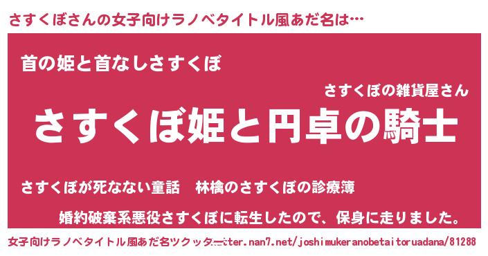 | 男性向けラノベタイトル風あだ名 | 『さすくぼの憂鬱』『魔弾の王とさすくぼ』 |