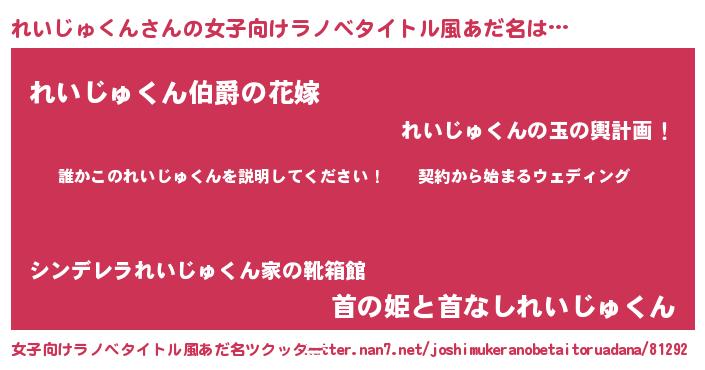 | 男性向けラノベタイトル風あだ名 | 『レイジュクンアートオンライン』 |