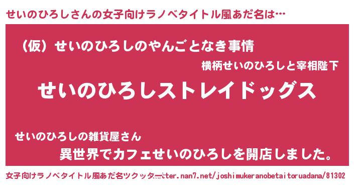 | 男性向けラノベタイトル風あだ名 | 『Re:せいのひろしから始める異世界生活』 |