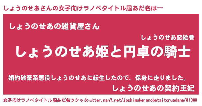 | 欧米人風あだ名 | 『マイケルしょうのせあ』 |