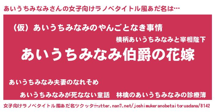| 男性向けラノベタイトル風あだ名 | 『やはりあいうちみなみの青春ラブコメはまちがっている 』 |