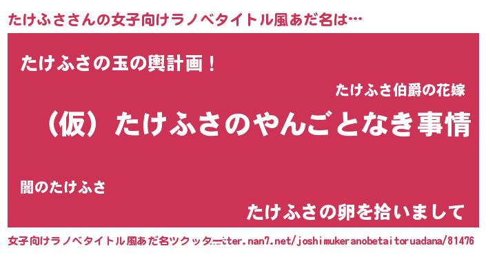 | 男性向けラノベタイトル風あだ名 | 『たけふさの憂鬱』 |