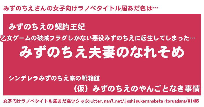 | 可愛いあだ名 | 『みずちゅっちゅ』『みずのちえママ』 |