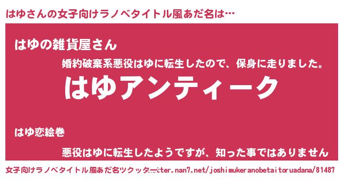 | 男性向けラノベタイトル風あだ名 | 『魔法科高校のはゆ』 |
