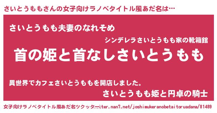 | 胡散臭い通販商品みたいなあだ名 | 『お金では代えられないイリジウム磁石…その名も「さいとうもも」』 |