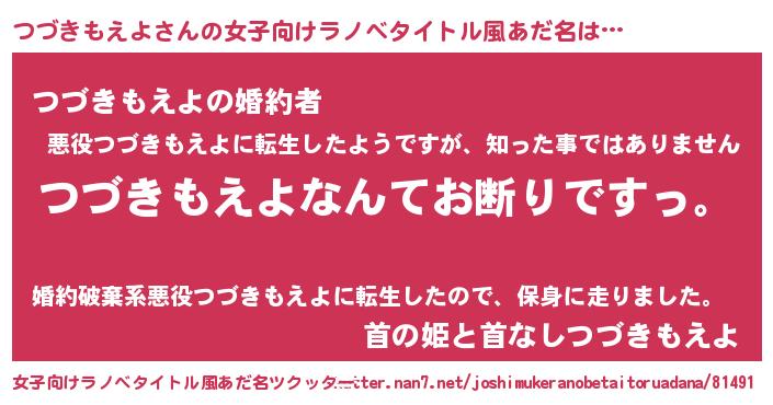 | 意味不明あだ名 | 『自称つづきもえよ』 |