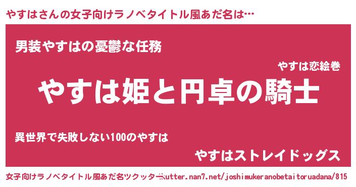 | 男性向けラノベタイトル風あだ名 | 『ヤスハアートオンライン』 |