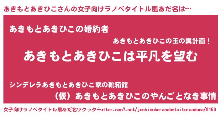 | 意味不明あだ名 | 『とにかく怪しいあきもとあきひこ』 |
