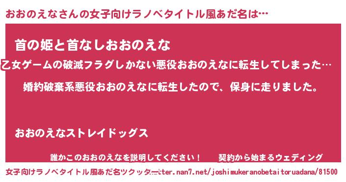 | 胡散臭い通販商品みたいなあだ名 | 『モテモテ間違いなしブレスレット…その名も「おおのえな」』 |