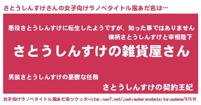 | 男性向けラノベタイトル風あだ名 | 『やはりさとうしんすけの青春ラブコメはまちがっている 』 |