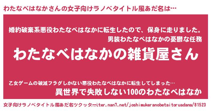 | ファンタジー風あだ名 | 『エターナルワタナベハナカー』 |