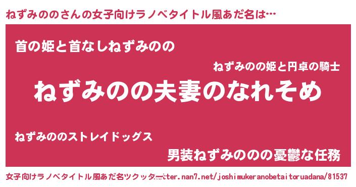 | 料理風あだ名 | 『ねずみのののトマト煮』 |