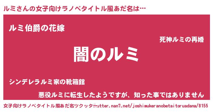 | 男性向けラノベタイトル風あだ名 | 『Re:ルミから始める異世界生活』 |