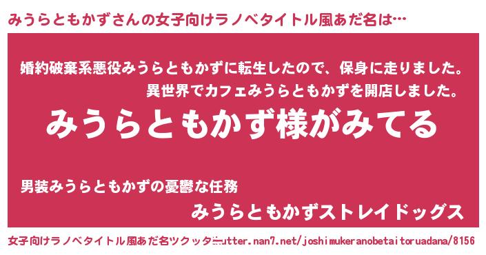| 男性向けラノベタイトル風あだ名 | 『みうらともかずの嫁は女の子じゃないと思った?』 |
