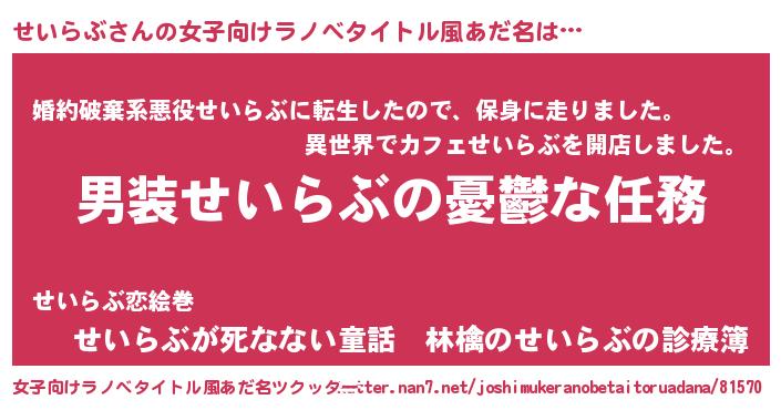 | ヒーロー風カッコイイあだ名 | 『仮面セイダー』『ネオセイラブ』 |