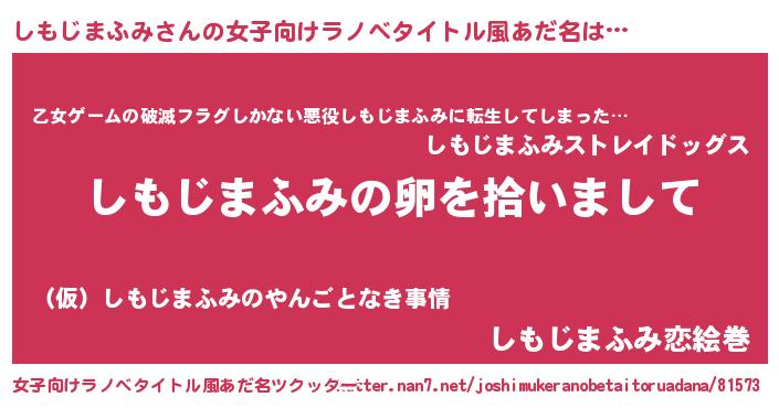 | 男性向けラノベタイトル風あだ名 | 『しもじまふみの嫁は女の子じゃないと思った?』 |