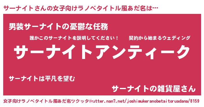 | 胡散臭い通販商品みたいなあだ名 | 『テレビで話題の高麗人参…その名も「サーナイト」』 |