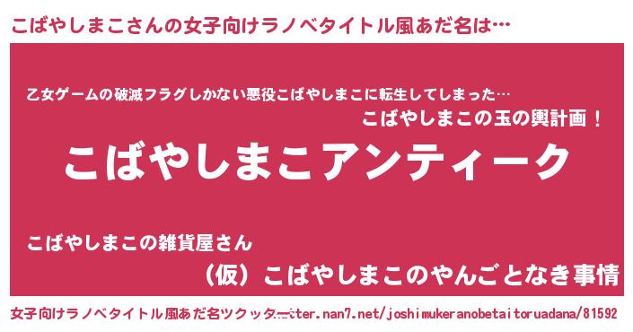 | 肩書あだ名 | 『こばやしまこ閣下』『こばやしまこ教官』 |