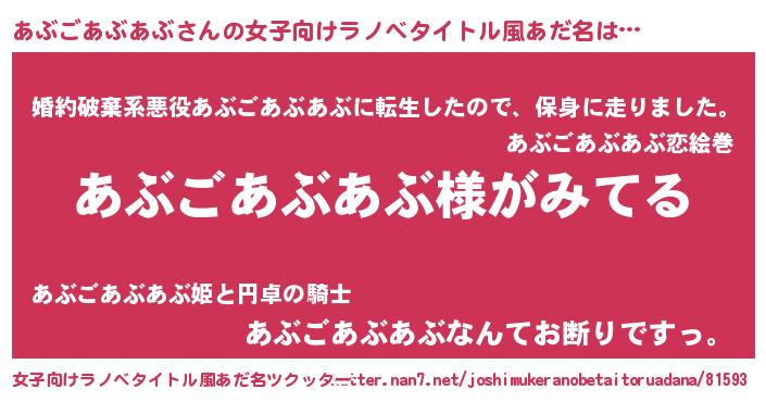 | 男性向けラノベタイトル風あだ名 | 『あぶごあぶあぶの嫁は女の子じゃないと思った?』 |