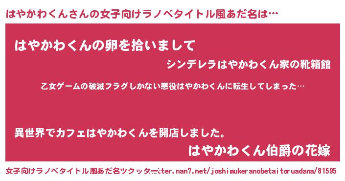 | ヒーロー風カッコイイあだ名 | 『仮面ハヤダー』『幻影騎士ハヤ』 |