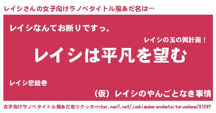 | ヒーロー風カッコイイあだ名 | 『暗黒騎士レイ』『超時空戦士レイシ』 |